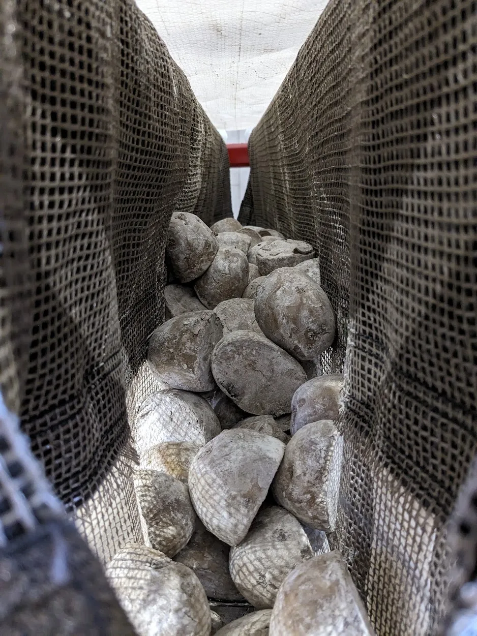 – De kiemrekken met gesneden poters 2 weken in een schuur zetten op 8-15ºC.
